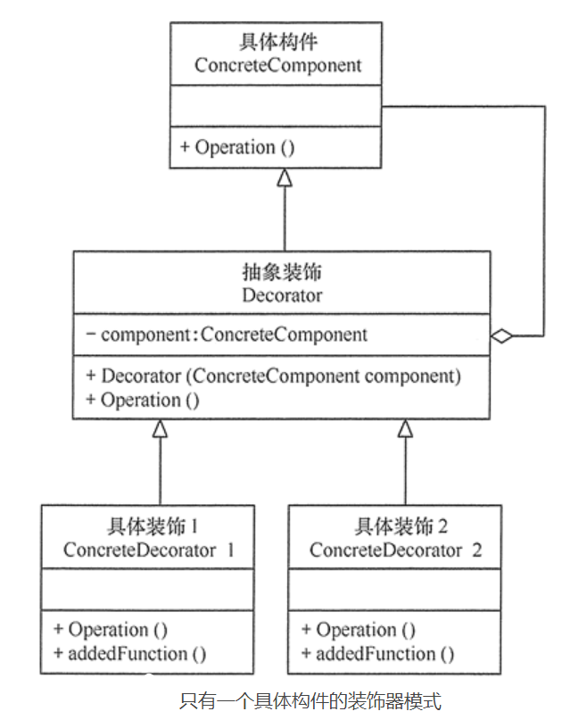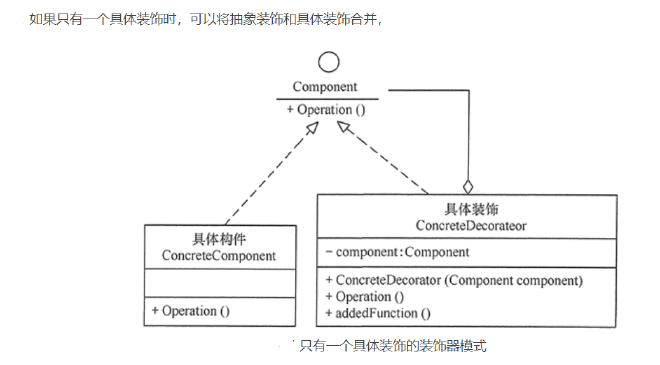 装饰器模式所包含的 4 个角色不是任何时候都要存在的,在有些应用环境下模式是可以简化的,如以下两种情况。