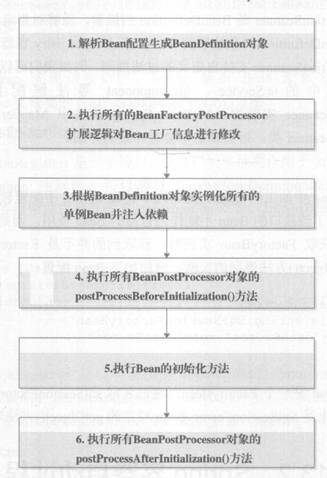 BeanPostProcessor 接口中定义了两个方法,postProcessBeforeInitialization()方法会在所有Bean初始化方法调用之前执行,postProcessAfterInitialization()方法会在所有Bean的初始化方法调用之后执行。BeanPostProcessor 通常用于处理 SpringBean对应的Java类中的注解信息或者创建 Bean的代理对象。