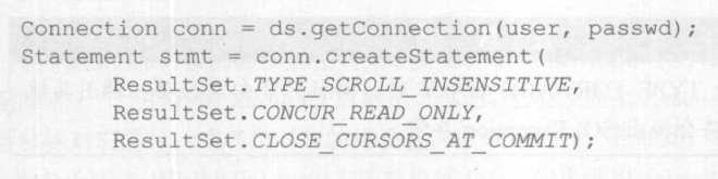 ResultSet的类型、并行性和可保持性等属性可以在调用Connection对象的createStatementOprepareStatementO或prepareCallO方法创建Statement对象时设置: